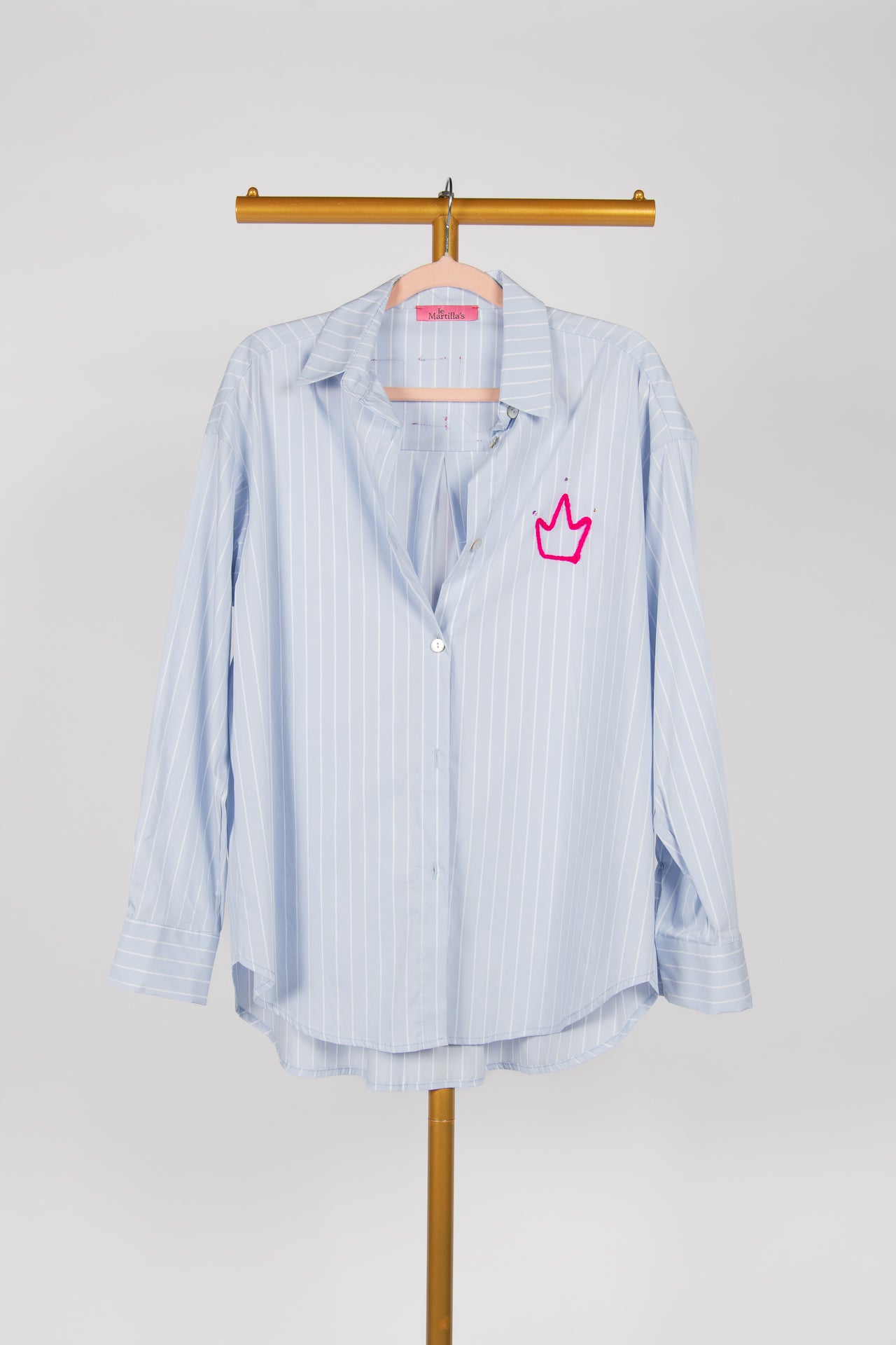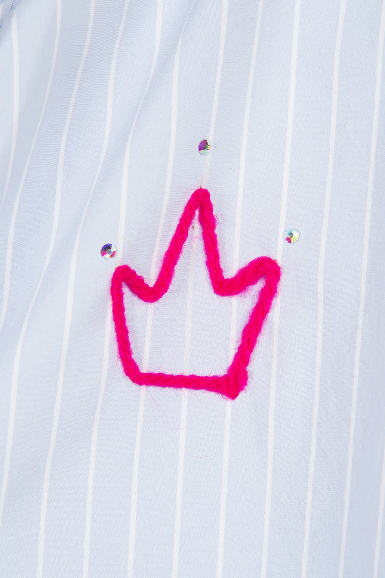 Scritta ricamata sul carrè della schiena con un filo in poliestere fucsia